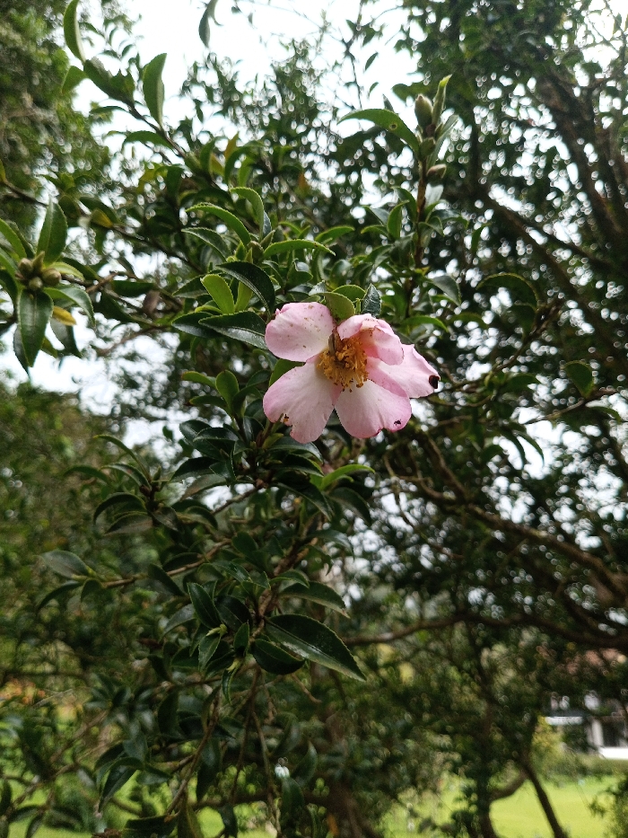 - "A single light pink flower, approximately 5 cm in diameter, is centered on a leafy shrub in an outdoor setting in Cimacan, Indonesia" by FM-KNwQf1, licensed under CC BY 4.0