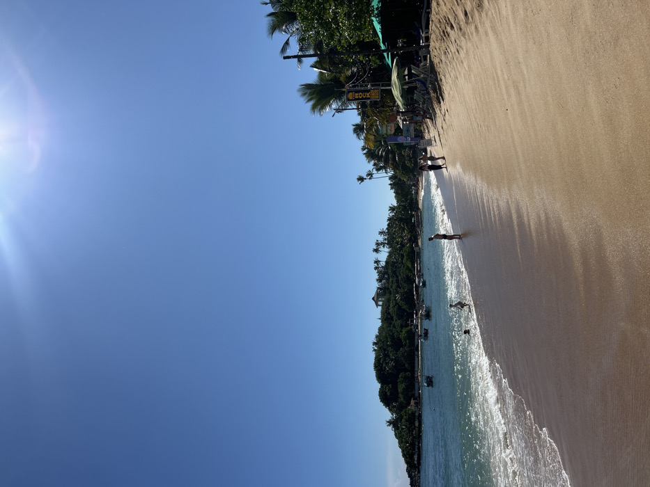 The image displays a sunny beach scene located at Rumassala, Sri Lanka