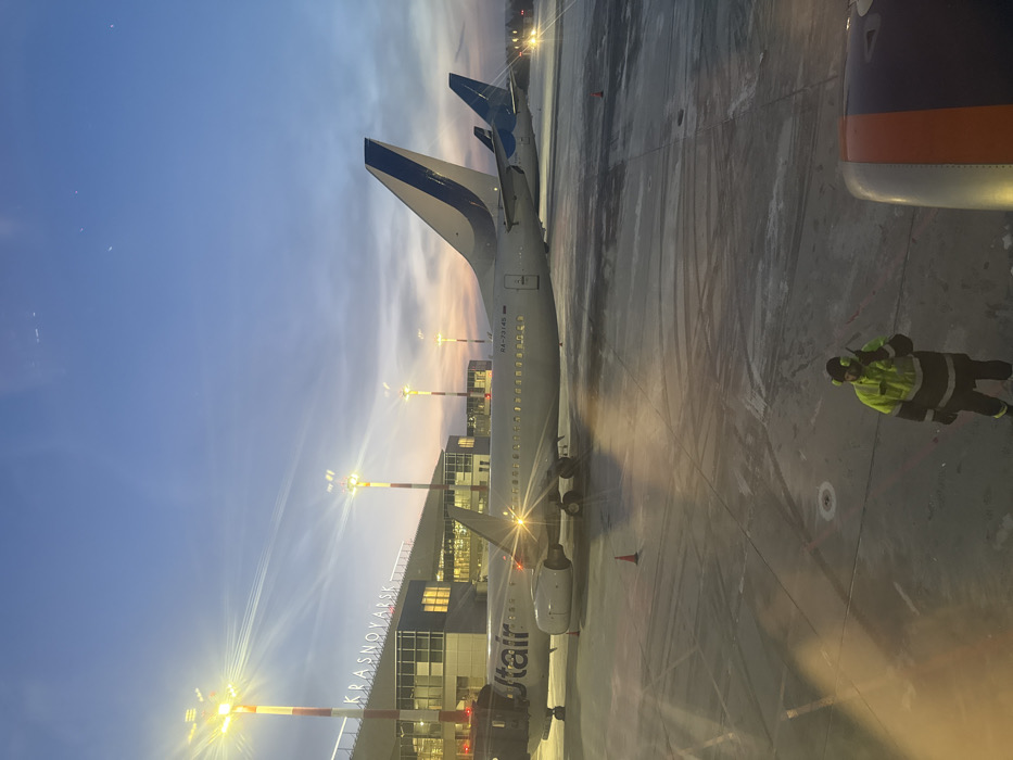 - "The image depicts an airport apron scene at Krasnoyarsk International Airport (Емельяново), Russia, during dusk or dawn" by FM-LQAZF2, licensed under CC BY 4.0