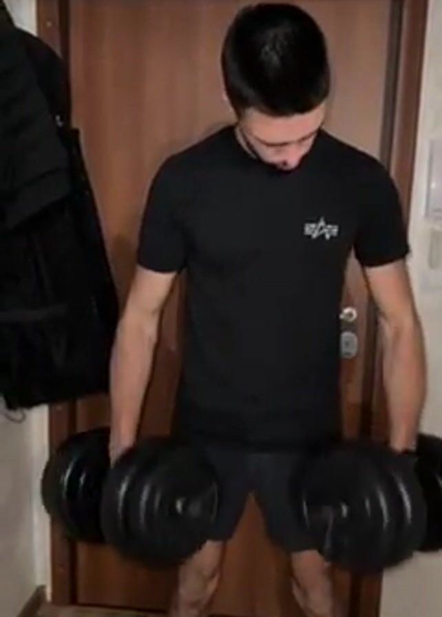 - "A young man is standing in a room and doing arm exercises with two dumbbells" by FM-Eq6832, licensed under CC BY 4.0