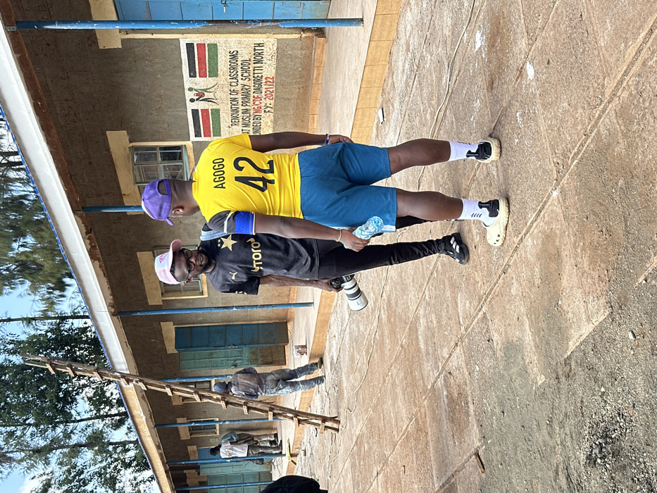 An outdoor scene is depicted at Muslim Primary School in Dagoretti North, Nairobi, Kenya, during daylight