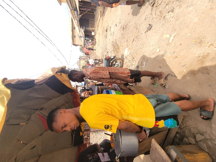 The image displays an outdoor street scene in Awka, Nigeria, under bright daylight conditions