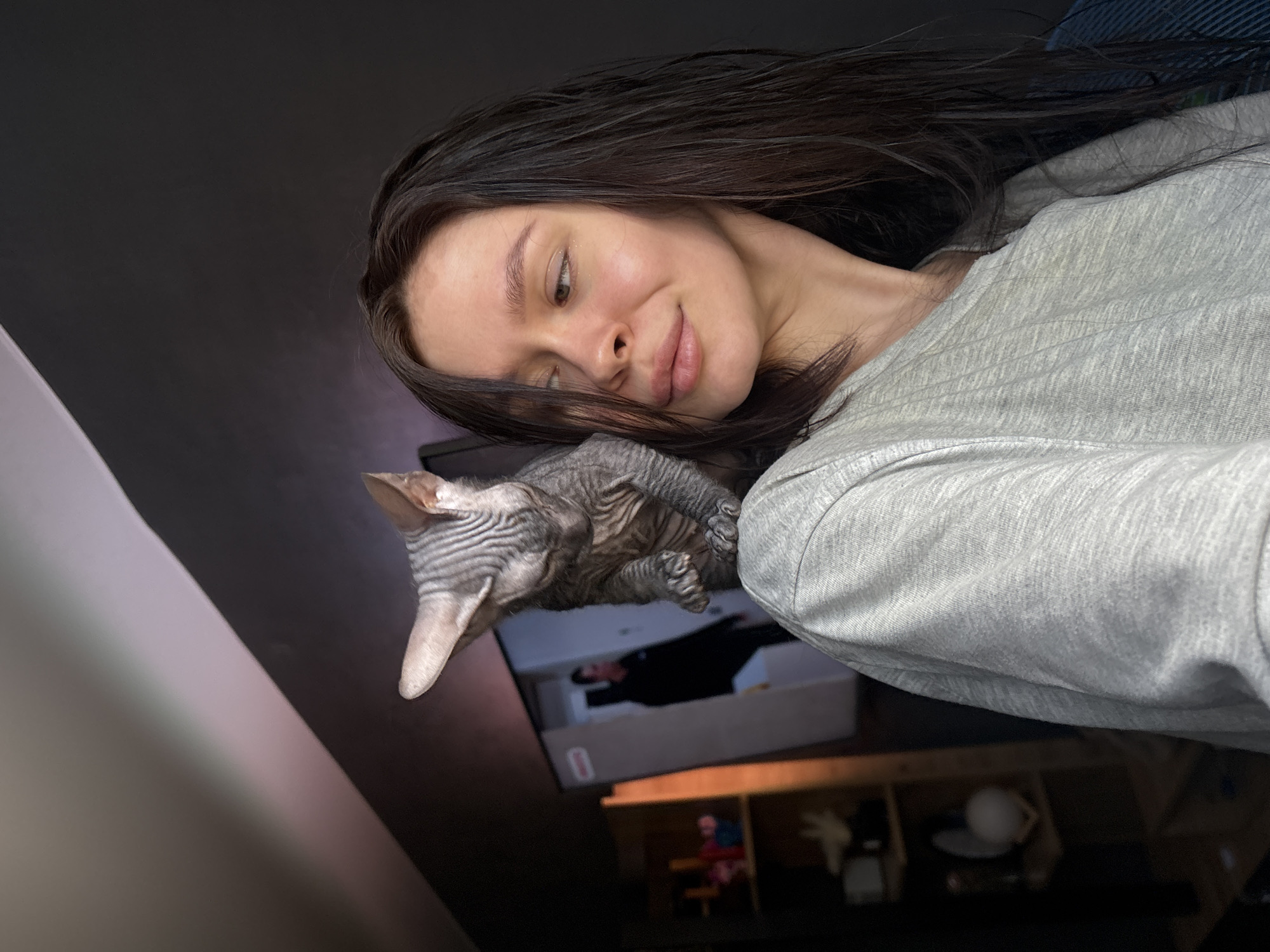 - "An indoor residential scene in Chaikovsky, Russia, features a female individual and a hairless cat" by FM-rdzlJ2, licensed under CC BY 4.0