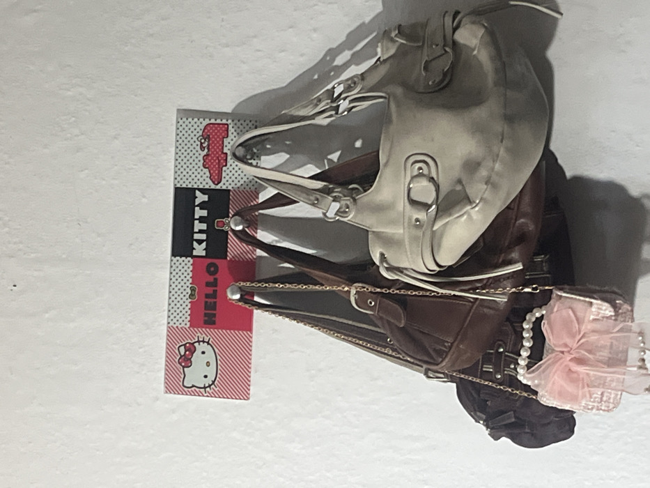 - "The scene, purportedly located in Kazanlak, Bulgaria, depicts four handbags suspended from a wall-mounted hook rack against a light-colored interior wall" by FM-dwX8o2, licensed under CC BY 4.0