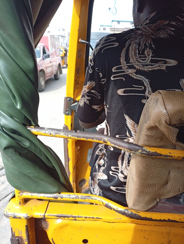 - "The image captures a street scene in Lagos, Nigeria, observed from the passenger perspective within a yellow three-wheeled commercial vehicle, commonly known as a Keke Napep" by FM-T9q042, licensed under CC BY 4.0