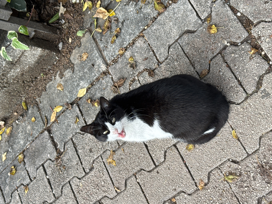 - "In Budva, Montenegro, a black and white domestic cat is positioned on a grey paver sidewalk" by FM-fSbZr2, licensed under CC BY 4.0