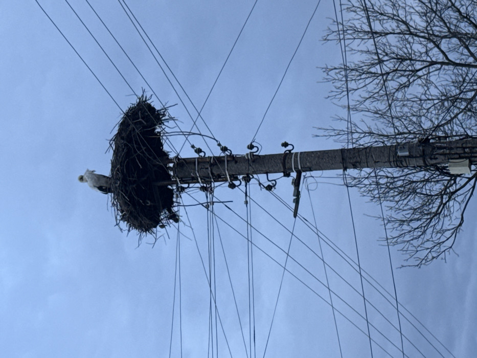- "An image captured in Dobrich, Bulgaria, displays a single white stork occupying a large, circular stick nest positioned atop a concrete utility pole" by FM-s19923, licensed under CC BY 4.0