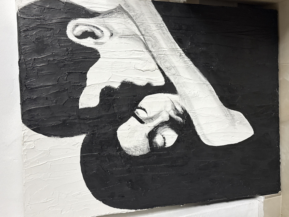 - "This image displays a vertically oriented, textured black and white painting depicting two embracing figures" by FM-YY3cF3, licensed under CC BY 4.0