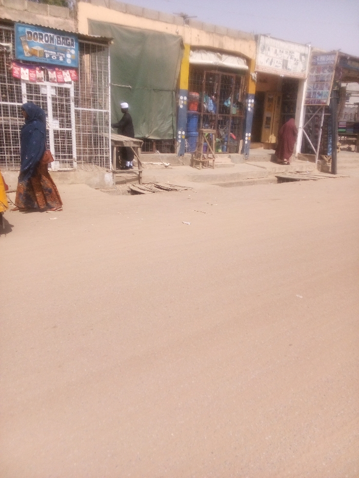 The image depicts a daytime street scene in Rangaza, Nigeria