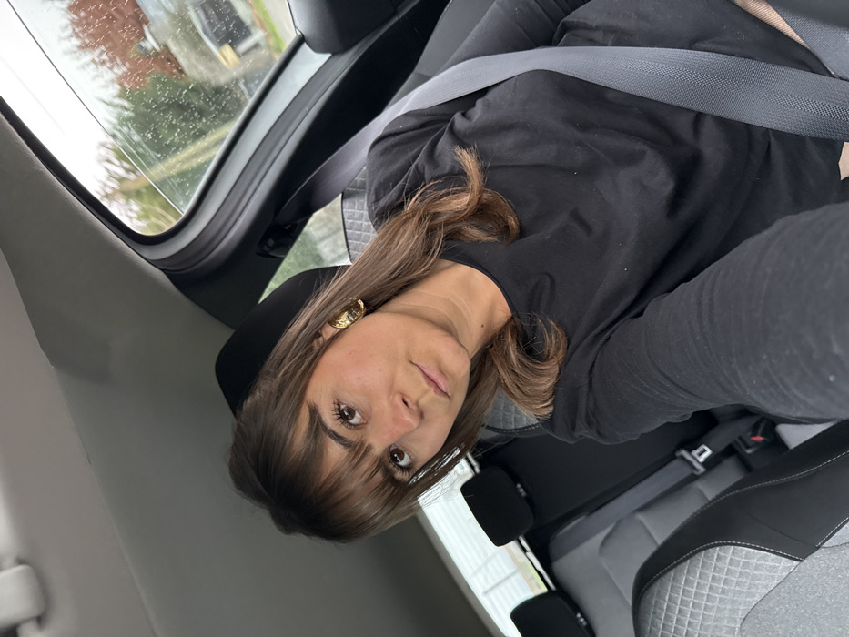 A single female individual is depicted seated in the front passenger seat of a vehicle, in what is identified as Cuzieu, France