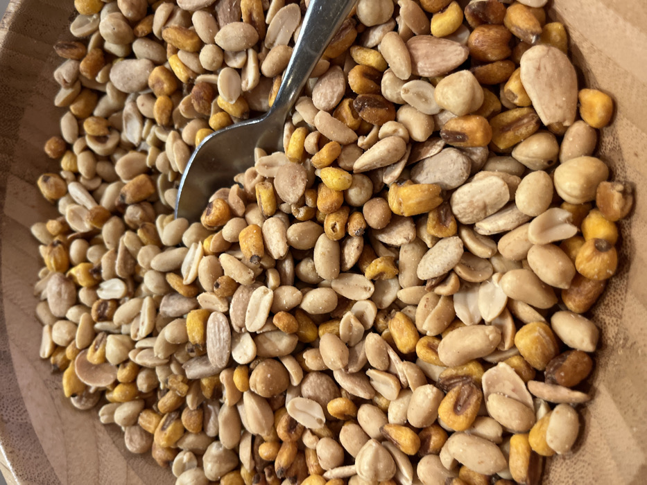 - "A wooden bowl filled with a mixture of peanuts and corn kernels" by FM-lnhCZ2, licensed under CC BY 4.0