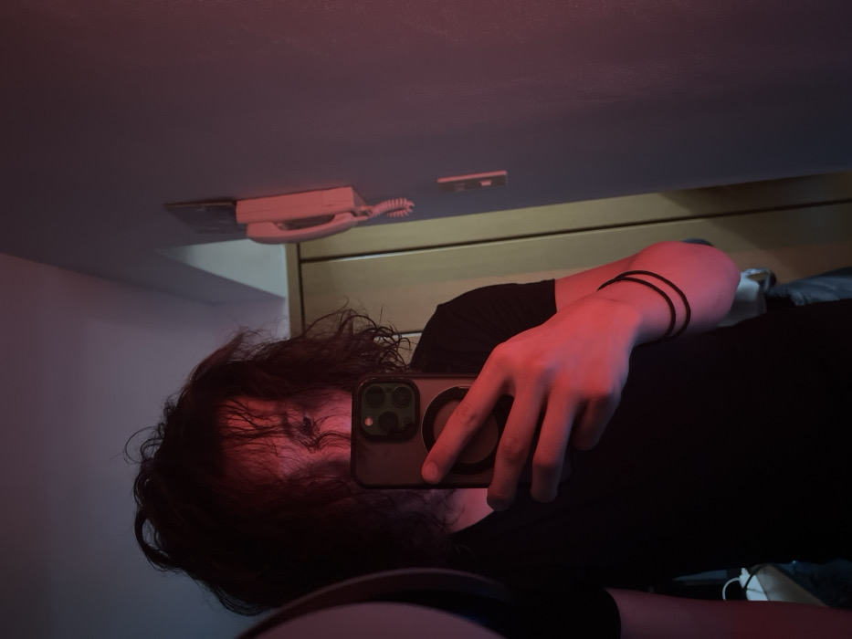 - "An individual is captured in a mirror selfie indoors in Ichikawa, Japan, under low, mixed red and blue/purple lighting conditions" by FM-Te9wG2, licensed under CC BY 4.0