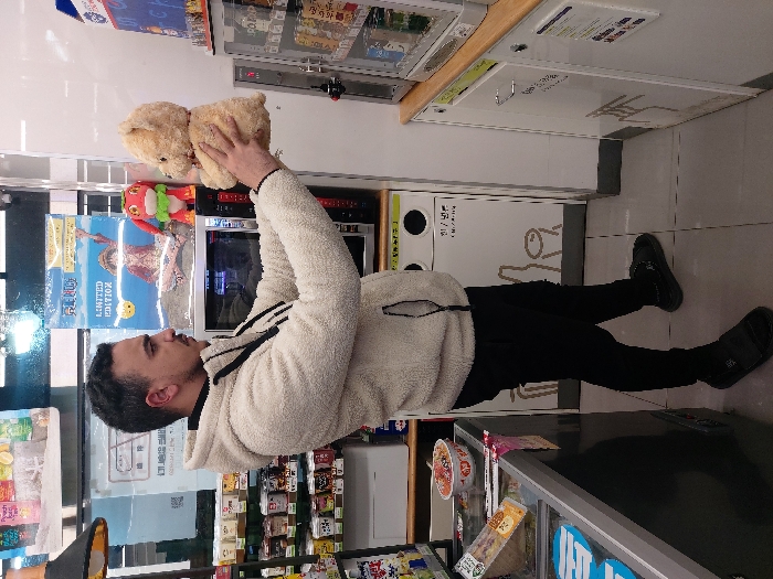 A male individual stands facing right within a convenience store in Kimpo-si, South Korea
