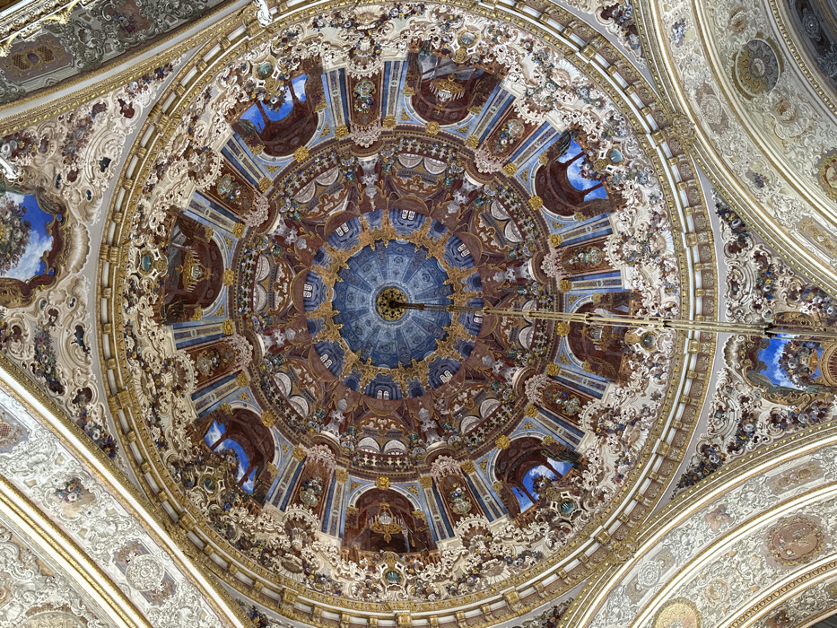 - "The image displays the ornately decorated domed ceiling of a grand interior space, identified as the Ceremonial Hall within Dolmabahçe Palace in Beşiktaş, Turkey" by FM-nWB3x2, licensed under CC BY 4.0