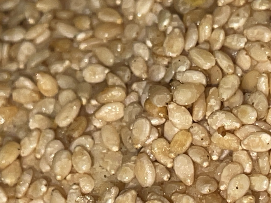 - "The image displays a close-up, high-magnification view of numerous sesame seeds, light brown to beige in color, densely packed together" by FM-jBMJn1, licensed under CC BY 4.0