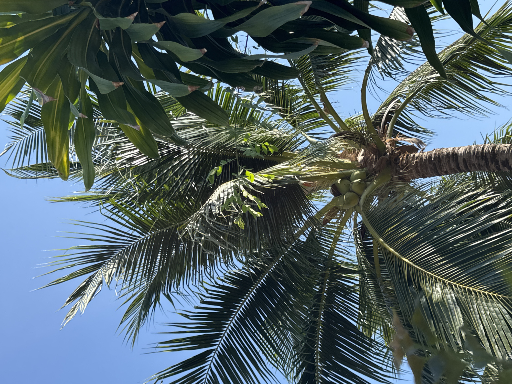 - "The image displays a close-up, upward view of tropical foliage against a clear, bright blue sky in Rawai, Thailand" by FM-BQyrk1, licensed under CC BY 4.0