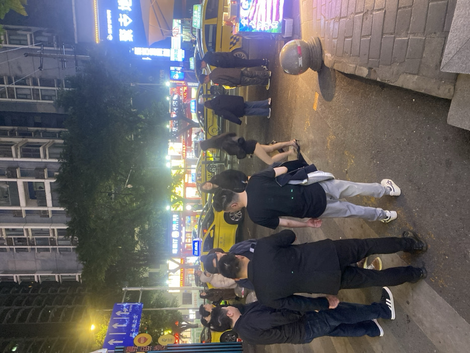 - "A nighttime street scene depicts several people walking along a sidewalk adjacent to a street filled with yellow taxis" by FM-I7Sd83, licensed under CC BY 4.0