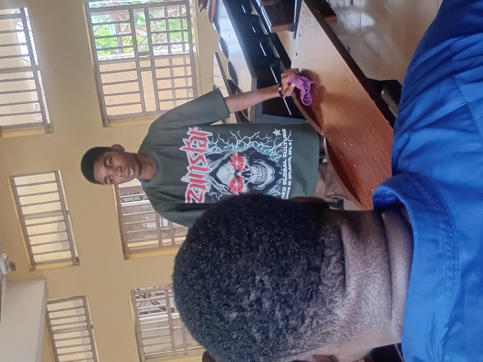 The image displays an indoor scene within a classroom or lecture hall located in Ukukwa, Nigeria