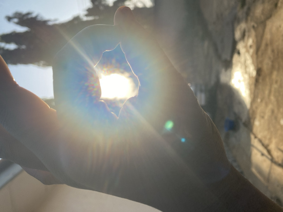 - "A sunlit hand creates a circular shape, allowing a burst of radiant sunlight to pass through" by FM-v68Gl1, licensed under CC BY 4.0