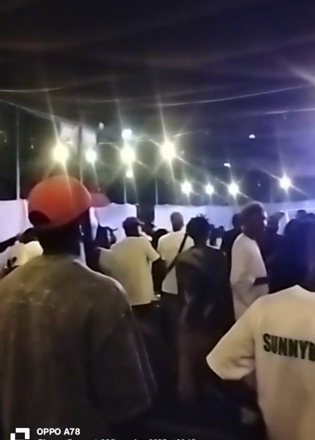 crowd of people gathered at a venue, possibly for a party or concert. The people are mostly silhouetted, but some are wearing light-colored shirts. There are stage lights visible in the distance, suggesting a performance is taking place. The environment looks like an indoor space with a high ceiling and exposed beams. The video is shaky, indicating it was taken by someone walking through the crowd. The timestamp at the bottom indicates the video was taken on December 26, 2025, at 00:15.