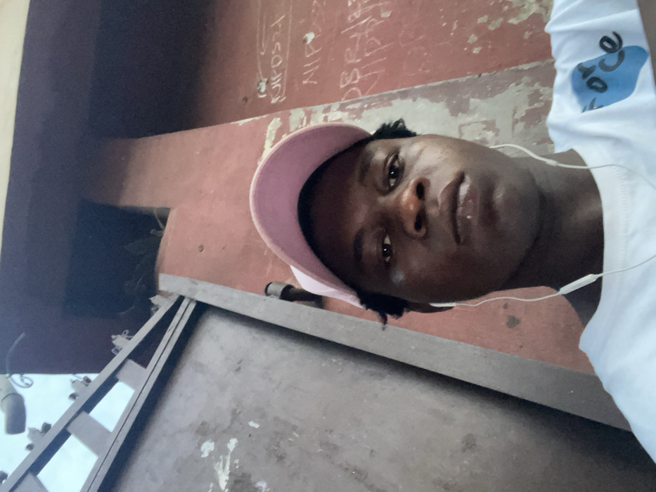The image displays a young male individual, presumed to be in Nkpor, Nigeria, centered in the frame and looking directly into the camera