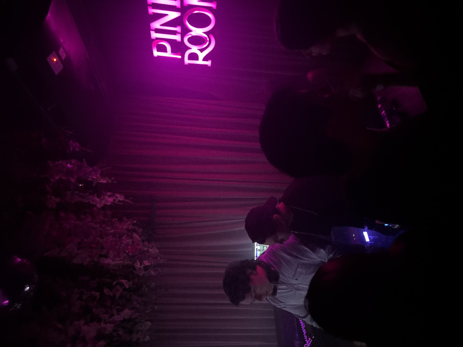 This image depicts an interior scene at Pink Room Bar & Grill, located at Calle 59 476A, Centro, 97000 Mérida, Yuc