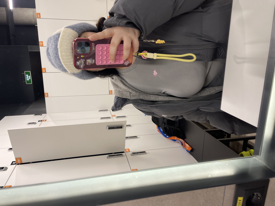 A person is reflected in a mirror, taking a selfie in what is identified as a locker room within Khimki, Russia