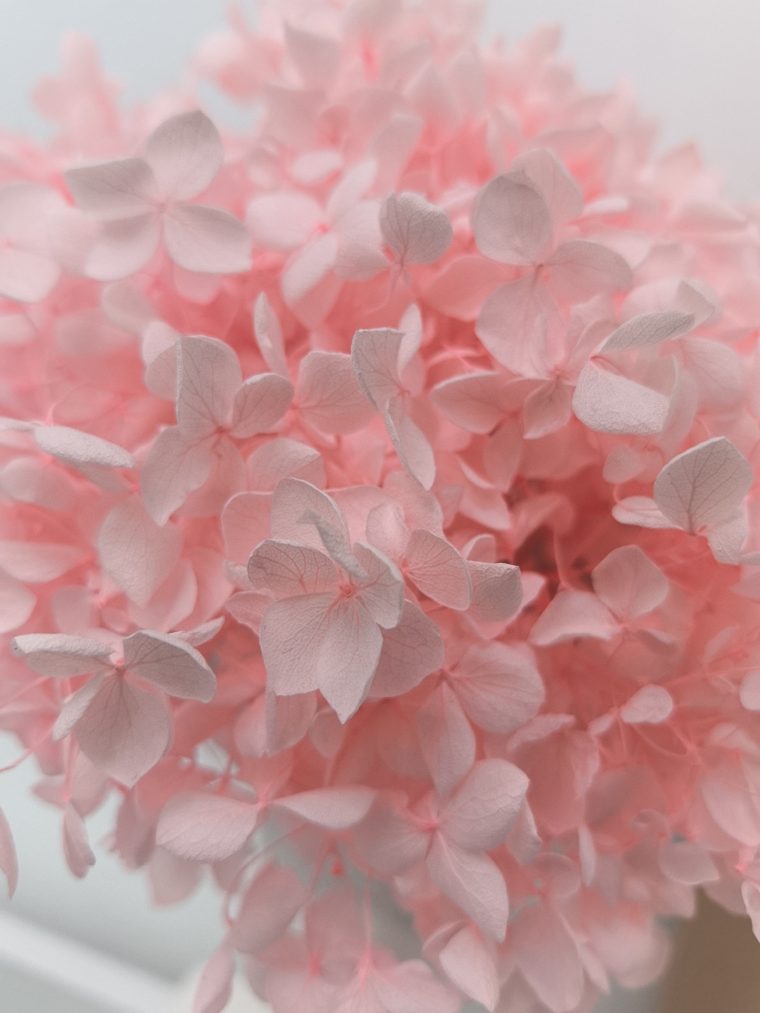- "A close-up photograph depicts a dense cluster of small, light pink flowers, possibly hydrangeas" by FM-juHmq2, licensed under CC BY 4.0