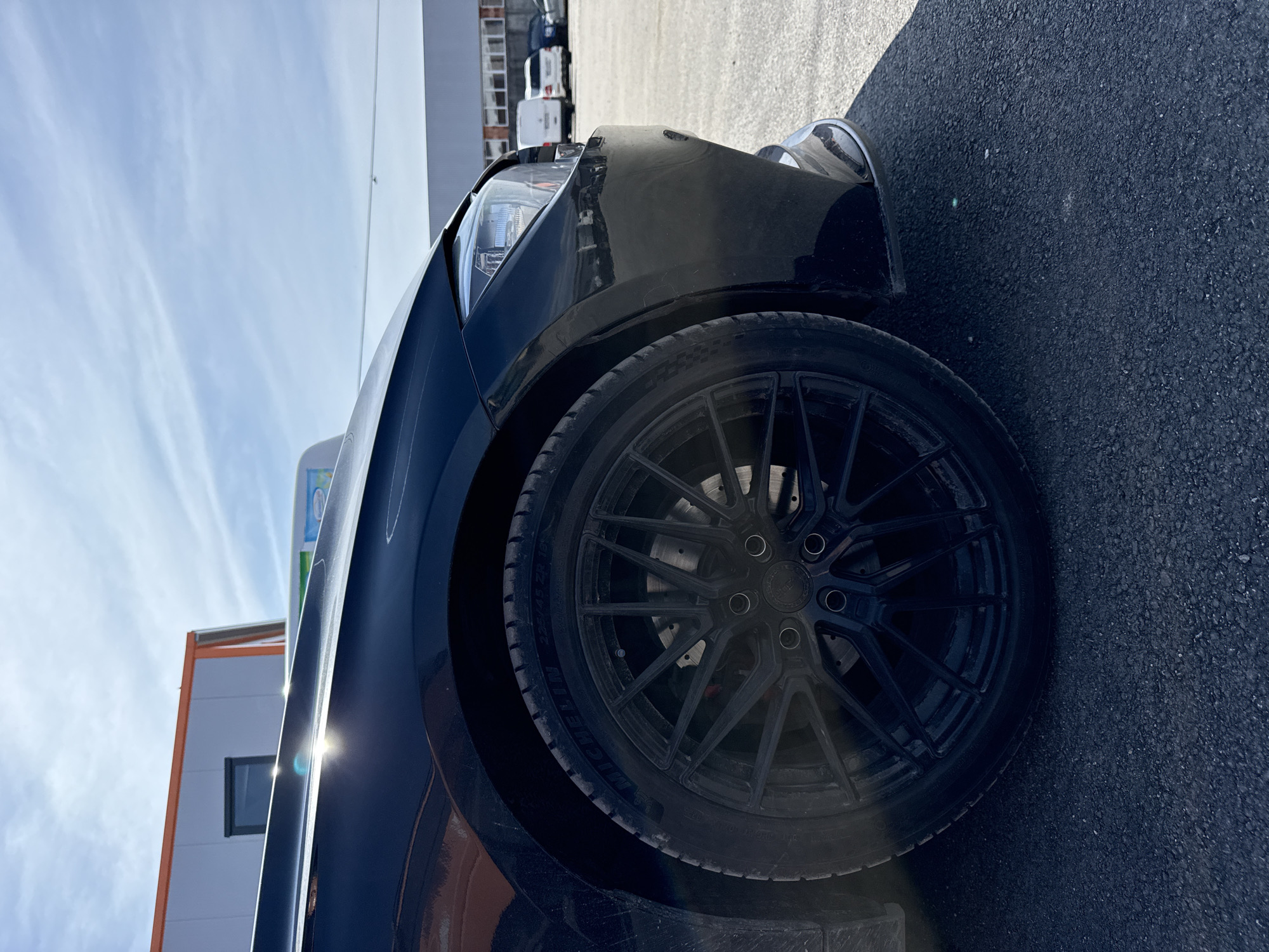 - "The image displays the front driver's side quarter of a black vehicle, specifically a car, situated on an asphalt parking surface in Gabrovo, Bulgaria, under a bright, sunny sky with scattered cirrus clouds" by FM-vEwE92, licensed under CC BY 4.0
