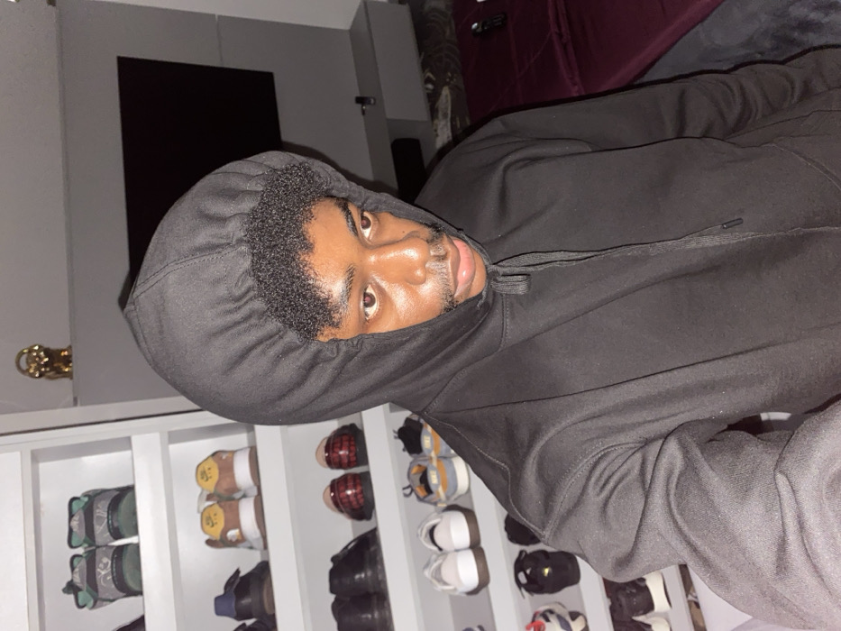 - "An indoor scene in Igboefon, Nigeria, features a young adult male in a black hooded sweatshirt with the hood pulled over his head" by FM-rkm0j2, licensed under CC BY 4.0