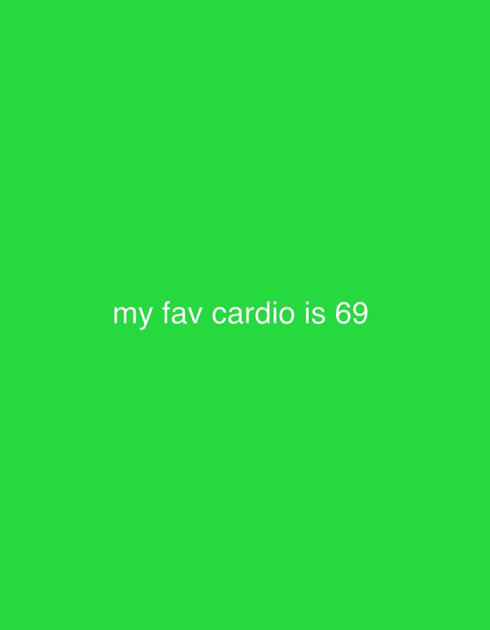 The image displays a solid, uniform field of bright green color. Centered horizontally and slightly below the vertical midpoint, white sans-serif text reads "my fav cardio is 69". No other subjects, objects, people, actions, or interactions are present. The environment is entirely a digital graphic; therefore, no physical location in Yerevan, Armenia, or any other city, can be identified.
