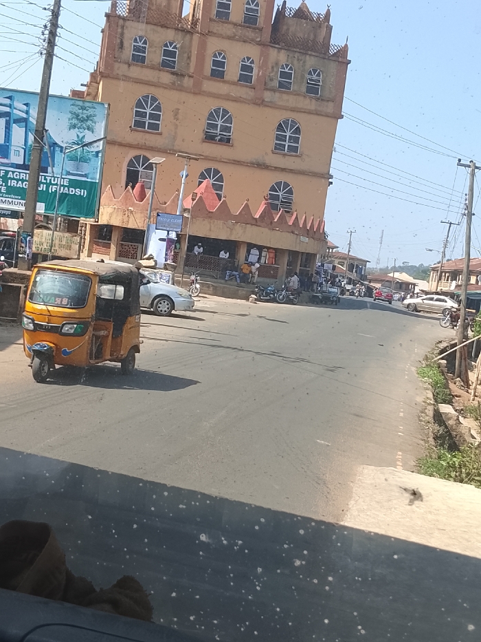 The image captures a daytime street scene in Iragbiji, Nigeria