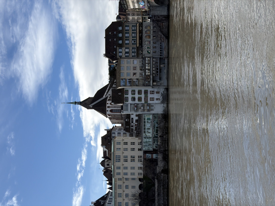 - "This image captures a panoramic view of the Grossbasel side of the Rhine River in Basel, Switzerland, under a partially cloudy sky" by FM-7gWCF3, licensed under CC BY 4.0