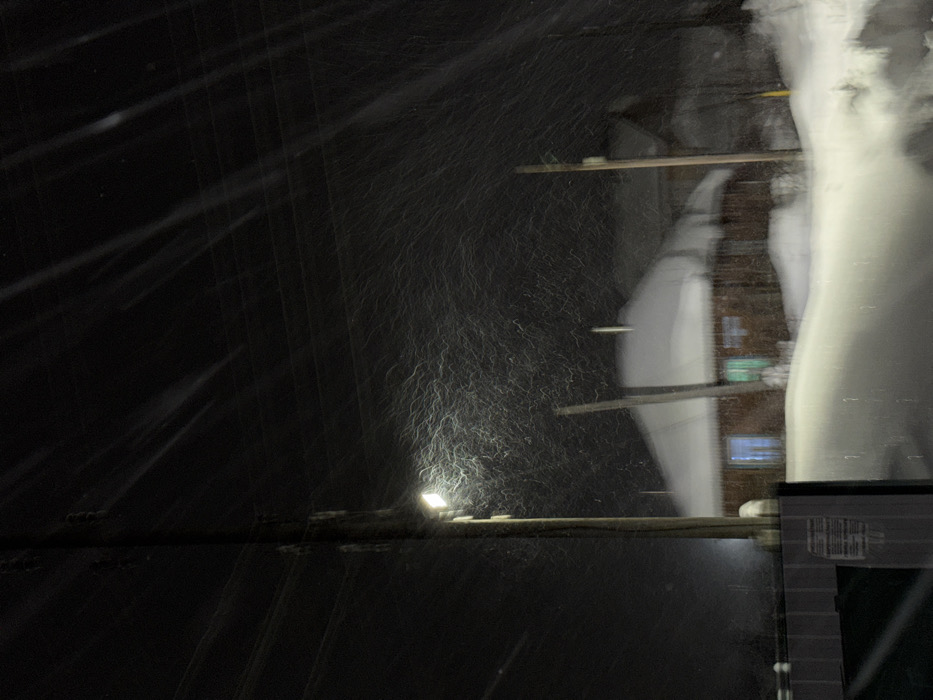 - "It is a dark, snowy night scene with blurred streaks indicating heavy snowfall" by FM-w9Rpx2, licensed under CC BY 4.0