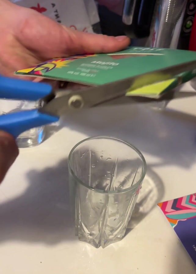 - "A person is cutting open a box of Vibes Mojito alcoholic drink with blue-handled scissors" by FM-NtwGg1, licensed under CC BY 4.0