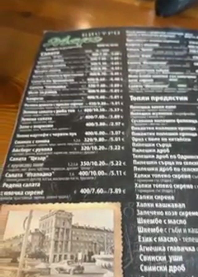 group of people in a restaurant looking at menus. The restaurant has wooden tables and black menus with white and green text. A young man wearing glasses looks up from his phone at the camera. Another young man with a shaved head looks at his phone as well. A woman puts her hand on the shaved headed man’s head.