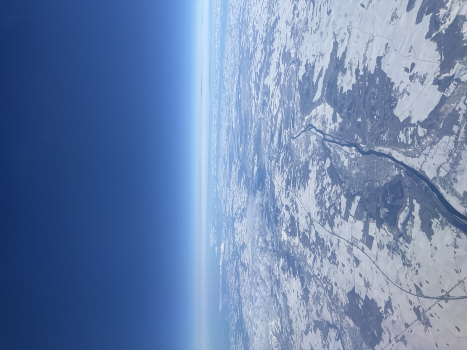 - "This image is a high-altitude aerial photograph, likely taken from an aircraft, presenting a broad view of a snow-covered landscape under a clear blue sky" by FM-euyLP2, licensed under CC BY 4.0