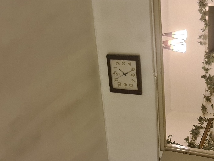 - "A square clock with a dark brown frame is mounted on a white wall" by FM-gCwqi1, licensed under CC BY 4.0
