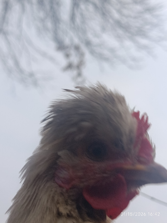 - "A close-up, low-angle image captured in Bekabad, Uzbekistan, on 01/18/2026 at 16:42, depicts the head and upper body of a chicken" by FM-w4uXC2, licensed under CC BY 4.0