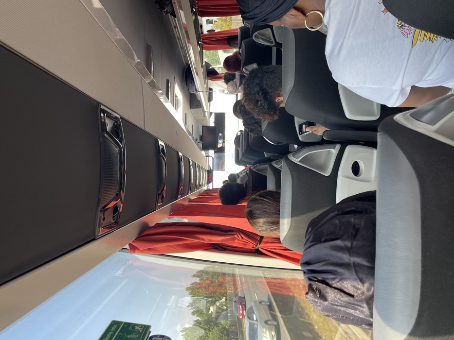 - "The image provides an interior view looking forward within a passenger bus or coach, which is in motion on a multi-lane highway" by FM-NQrs03, licensed under CC BY 4.0