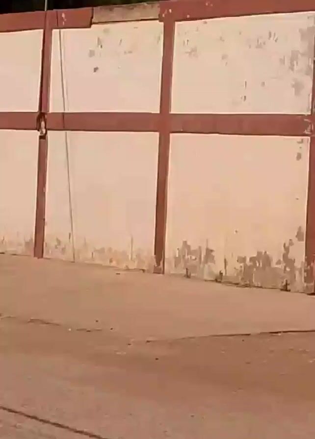 The video depicts a street scene on a sunny day. It begins with a view of a building with a mural that includes the words "Parque Infantil Niño S." The camera then moves along the street, showing houses, trees, and utility poles. The streets appear to be made of packed dirt or gravel. There are no visible people in the video. The camera appears to be moving, possibly from a vehicle. A palm tree is visible in one of the shots. The general impression is that of a quiet, rural street scene. The video is recorded by an Infinix SMART 8.