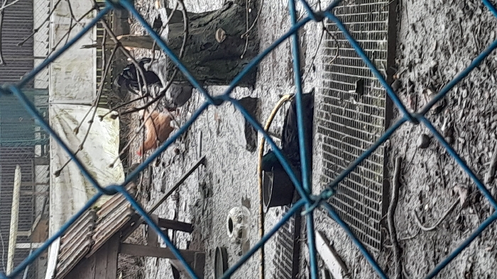 - "The image depicts an outdoor fowl enclosure in Meistratzheim, France, viewed through a blue chain-link fence in the foreground" by FM-gI3X12, licensed under CC BY 4.0