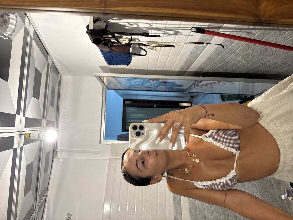 A female subject is captured in a mirror selfie within a bathroom located in Nilwella, Sri Lanka