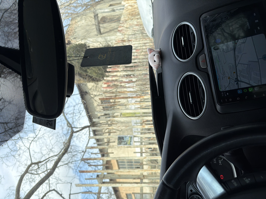 The image captures an interior-to-exterior view from inside a vehicle parked in Varna, Bulgaria
