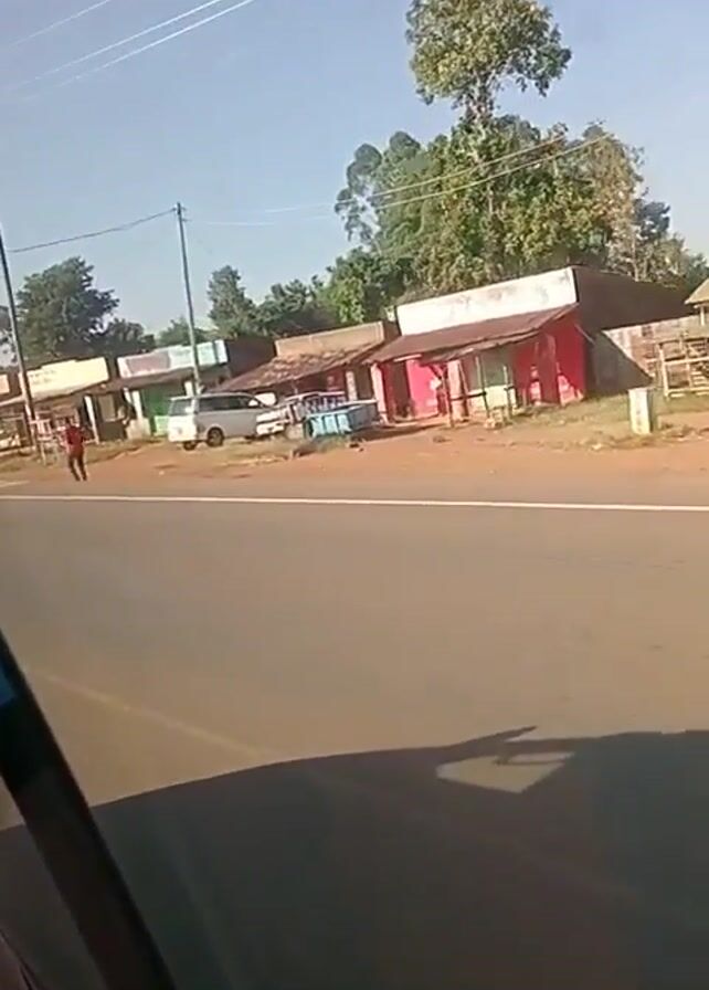 The video appears to be taken from inside a moving vehicle driving on a paved road in a rural or semi-rural area