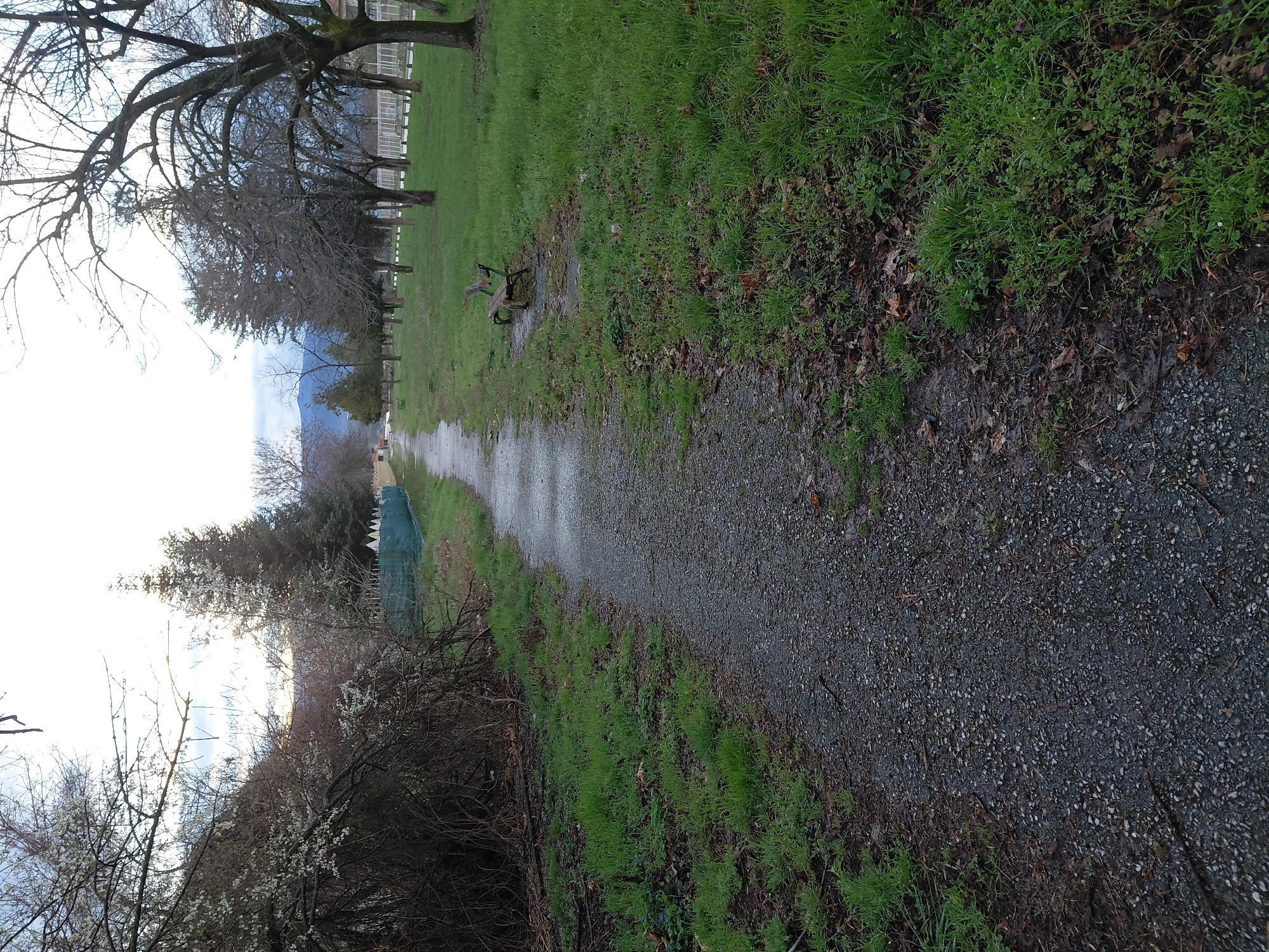 The image depicts a path in a park or green space, likely after rain, in an unknown location of Bratsigovo, Bulgaria