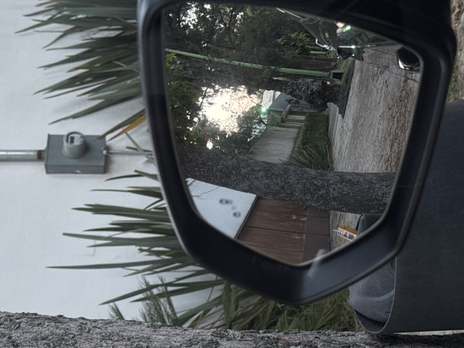- "The image displays a view from a vehicle's interior, focused on the left side-view mirror and the adjacent exterior environment" by FM-8uZDn2, licensed under CC BY 4.0