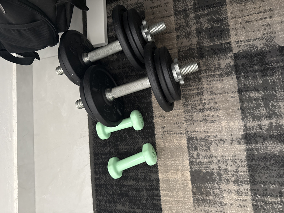 - "The image displays a collection of fitness equipment resting on a patterned rug inside a room located in Netanya, Israel" by FM-rbE8H2, licensed under CC BY 4.0