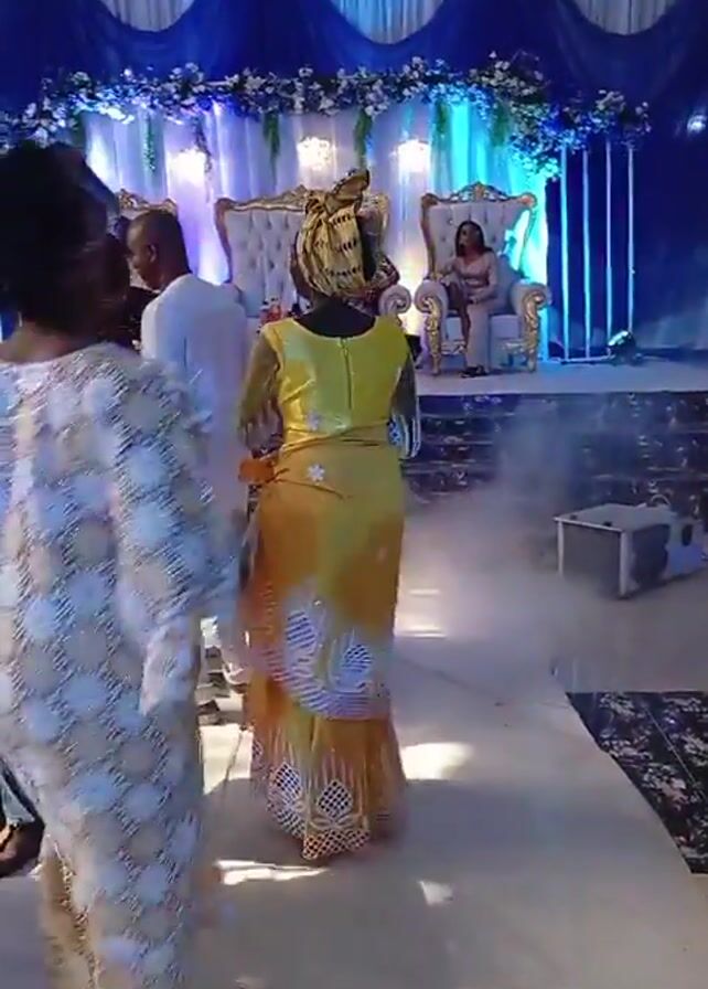 A low-angle video shows a decorated wedding reception room with people dancing to loud music