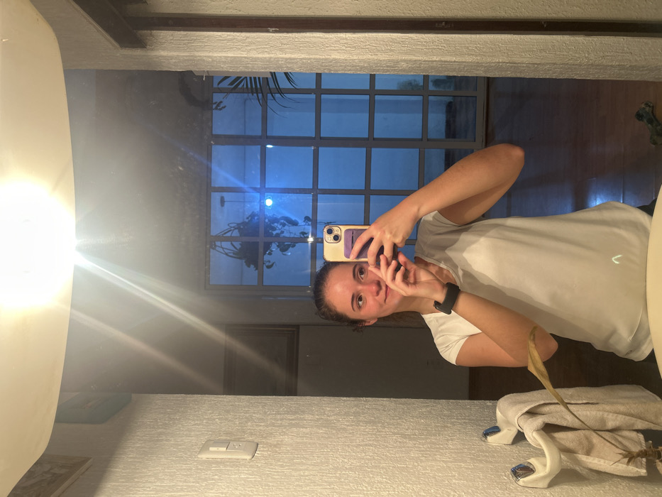 - "A mirror selfie captures a young woman in a white t-shirt" by FM-gAfVJ2, licensed under CC BY 4.0